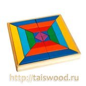 Яркая игрушка состоит из брусков разного цвета и размера, уложенных в квадратную деревянную коробку. У ребенка есть возможность создавать свои неповторимые орнаменты, тем самым, развивая творческие способности. Также, разноцветные детали можно использовать как элементы конструктора.