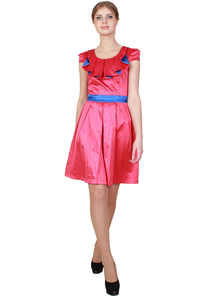 В боковые швы вшит пояс, который можно завязать бантом, как сзади, так и спереди.