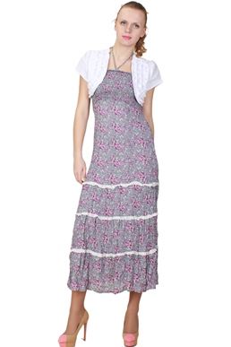 Болеро из хлопка-стрейч. Полочки из двух слоев ткани, украшены несколькими рядами рюшек.
