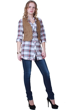 Спереди два накладных кармана и застежка на потайную пуговицу.