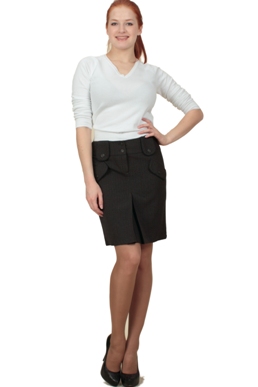 Юбка из костюмной ткани с декоративными карманами-клапанами.
