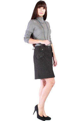 Юбка силуэта карандаш заужена книзу, спереди встречная складка. Без подкладки.
