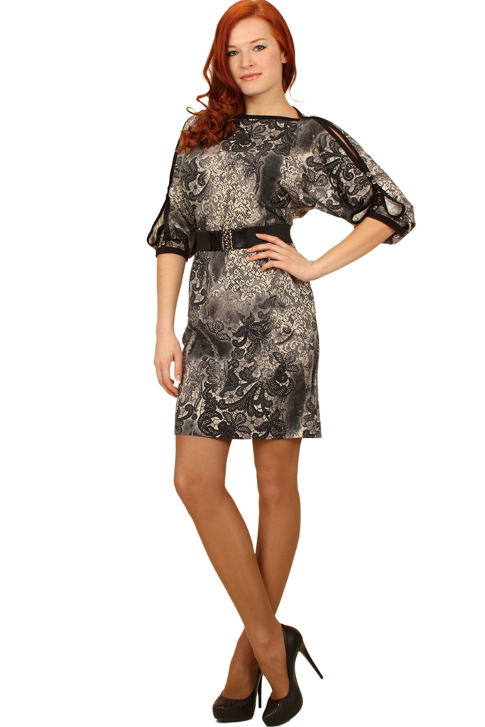 "Платье из мягкого теплого трикотажного полотна с ""кружевным"" рисунком.