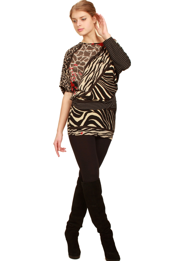 "Платье асимметричного кроя из тёплого трикотажного полотна (бэрбери). Можно носить как платье, так и в виде туники.