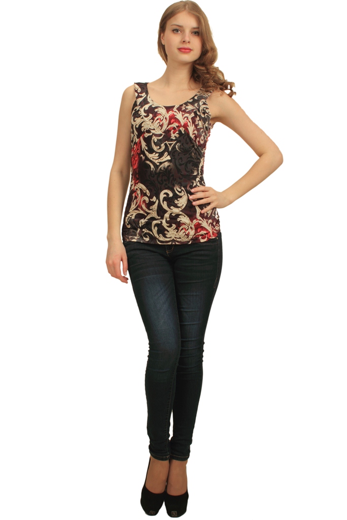 "Топ без рукава из трикотажной поливискозы с металлизированным напылением.