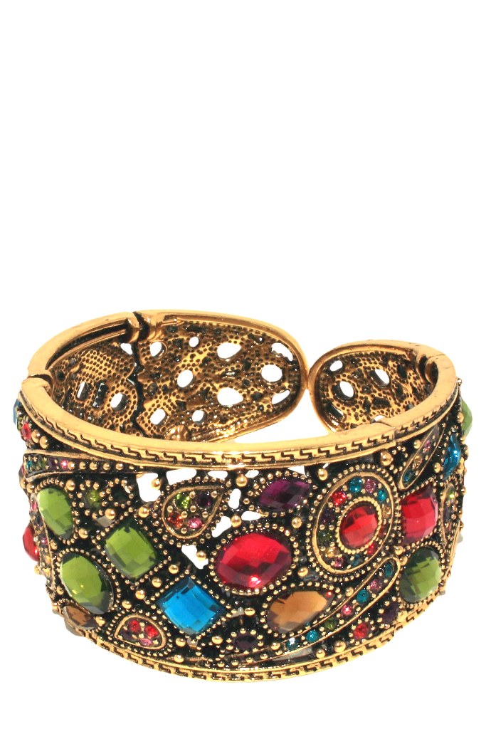 "Металлический браслет, украшенный стеклянными камнями и эмалью.